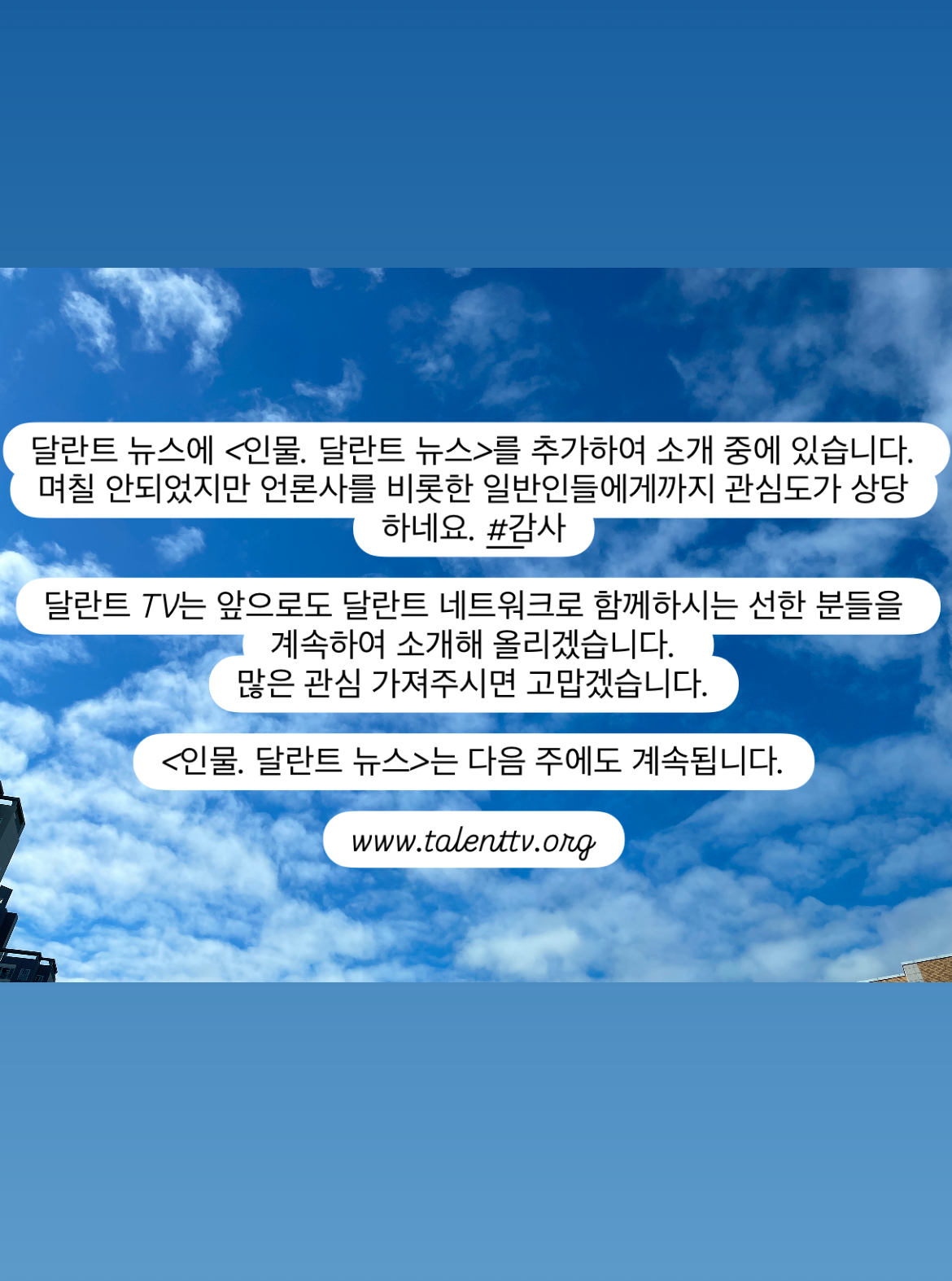 달란트 TV는 앞으로도 달란트 네트워크로 함께하시는 선한 분들을 계속하여 소개해 올리겠습니다.