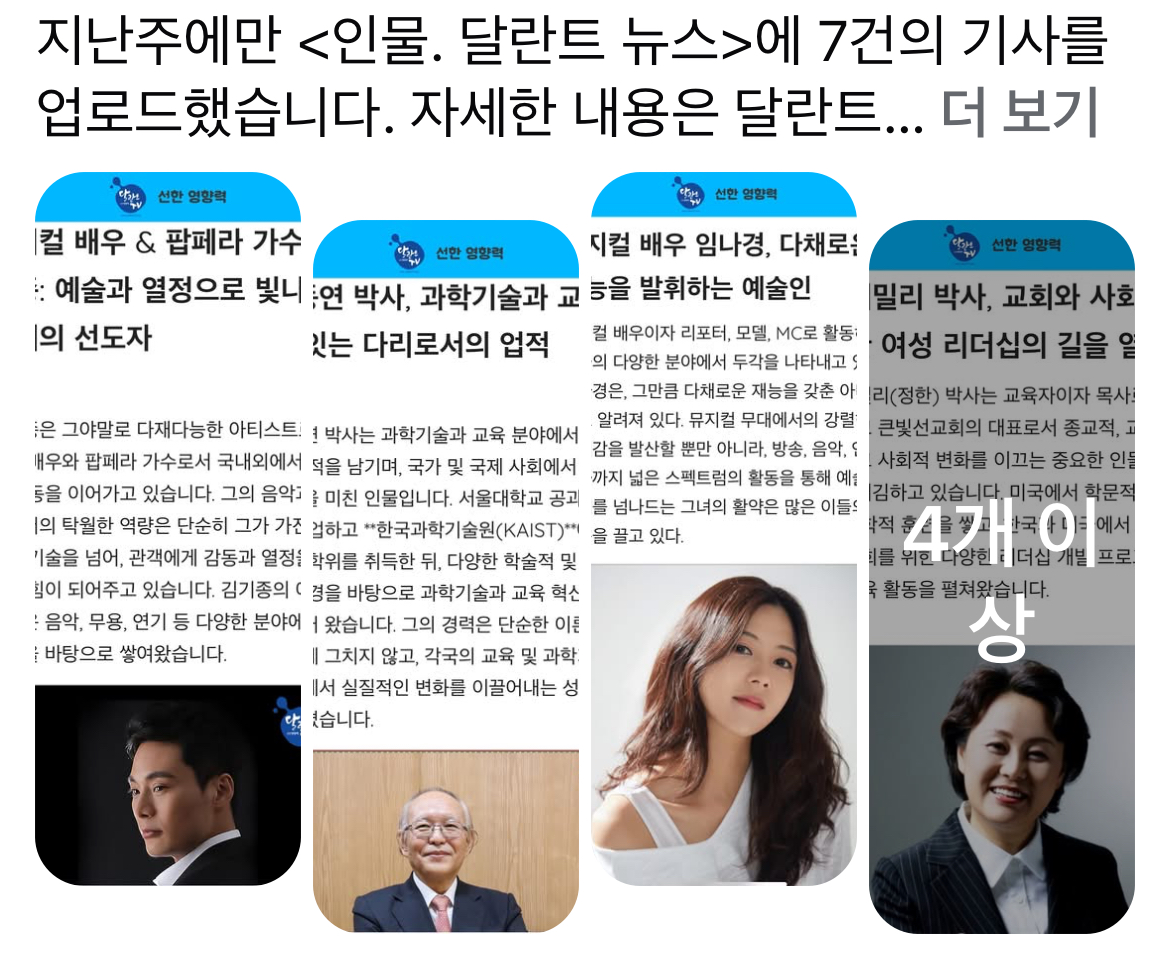 이번 주에는 어떤 분들이 <인물. 달란트 뉴스>에 소개가 될까요? 기대해 주세요.🥰🥰🥰