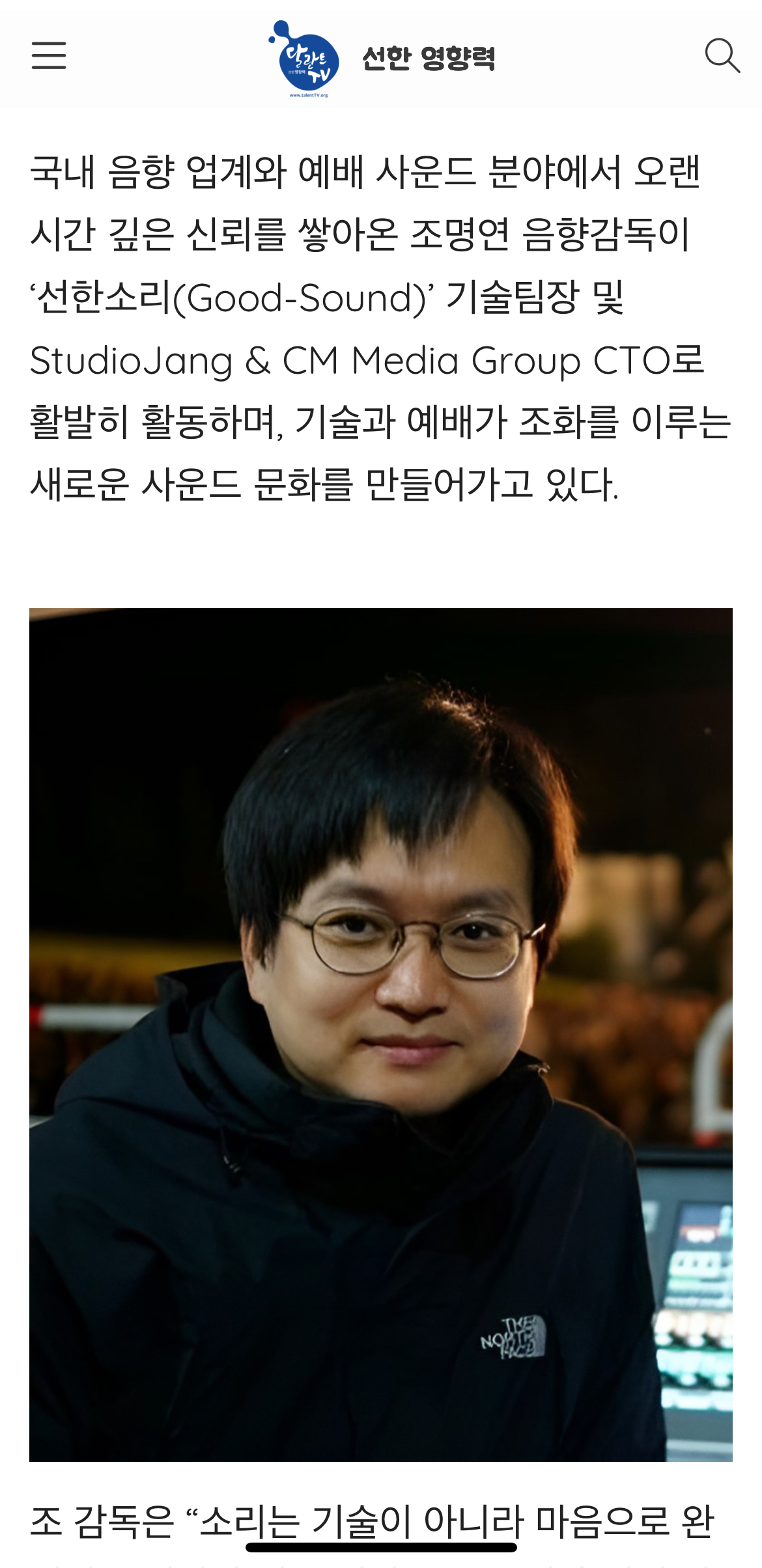 국내 음향 업계와 예배 사운드 분야에서 오랜 시간 깊은 신뢰를 쌓아온 조명연 음향감독이 ‘선한소리(Good-Sound)’ 기술팀장 및 StudioJang & CM Media Group CTO로 활발히 활동하며, 기술과 예배가 조화를 이루는 새로운 사운드 문화를 만들어가고 있다.