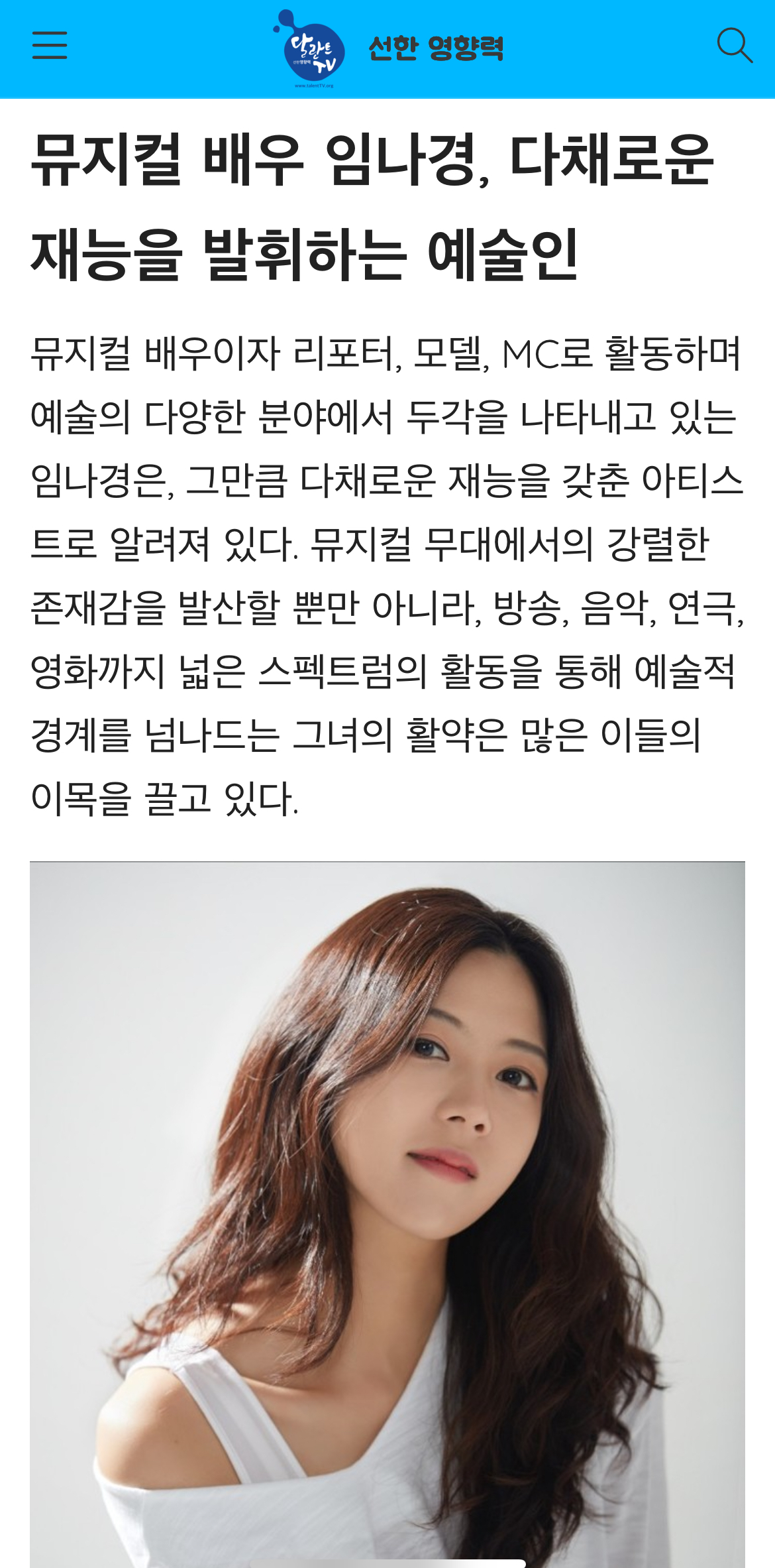 #달란트뉴스 #인물달란트뉴스 #임나경 #뮤지컬배우임나경 #다채로운재능인 #달란트TV #선한영향력 #비즈미션넷 #나눔실천홍보대사 #홍보대사
